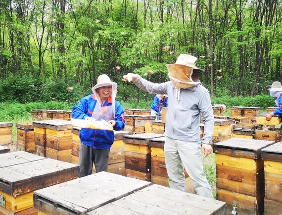 下面田野牧蜂帶大家了解一下不成熟蜂蜜的采集方法,蜜蜂首先憑著像抽水機樣的長吻把花蜜吸入體內的蜜囊中,它像一個裝東西的袋子,蜜蜂把花蜜采滿袋子后,飛回蜂箱,將蜜囊中的花蜜吐在巢房中,再由蜂箱中的內勤蜂進行釀造,未等封蓋蜂農就將蜜脾利用離心的原理用搖蜜機將蜂蜜取出。